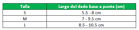 Se debe medir el largo del dedo desde la base hasta la punta.